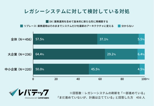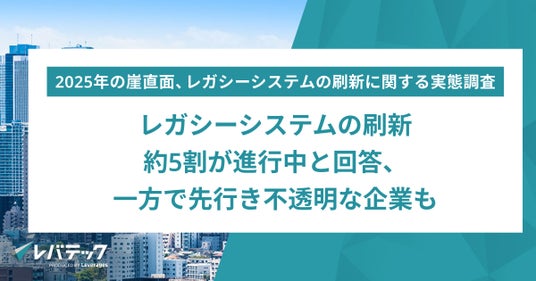 「日本を、IT先進国に。」をビジョンに掲げるレバテック株式会社( https://levtech.jp/ ) は、レガシーシステムを保有している企業の情報システム部門の担当者と経営層516名に対して、レガシーシステムの刷新状況に関する実態調査を実施しました。