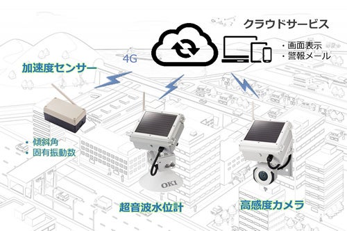 OKIの「ゼロエナジーIoTシリーズ」は、商用電源や通信工事が不要で、橋梁などのインフラ構造物を遠隔からモニタリングできるソリューションです。本シリーズは、河川の水位やインフラ構造物の傾斜・固有振動数など各種センサーで計測し、その変化を可視化します。また、高感度カメラを搭載しているため、昼夜を問わず鮮明な画像の撮影が可能です。取得したデータや画像はクラウドを通じて、遠隔地のパソコンやスマートフォンのブラウザから簡単に確認できます。さらに、異常を検知した際には自動通知機能により、迅速な状況把握が可能となり、インフラ管理者の迅速な判断を支援します。国内では、多くの導入実績があり、その実用性と信頼性が高く評価されています。