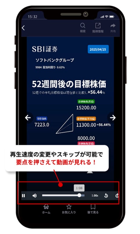 動画で簡単に情報収集ができ、株価の値動きや競合比較も通勤・通学中のすきま時間に手軽にチェックできます。