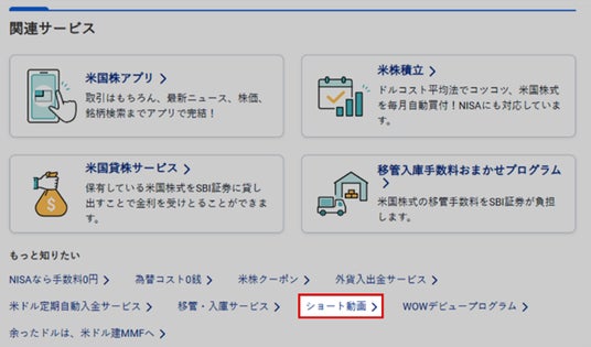 外国株式TOP>米国>関連サービス内の「ショート動画」をクリック