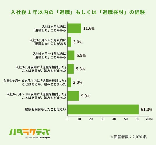 1.入社1年以内の退職経験者の約6人に1人は「1週間以内」に退職、初期段階での違和感が招く“成田離婚”のような実態