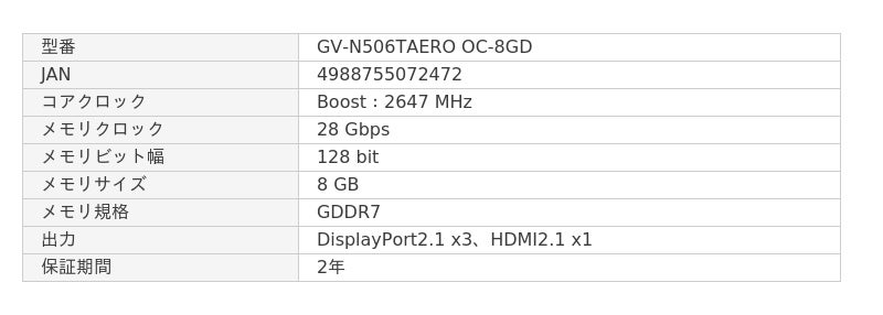 GV-N506TAERO OC-8GD | GIGABYTE(ギガバイト) NVIDIA GeForce RTX 5060 Ti 搭載 クリエイター向け オーバークロック グラフィックボード (VRAM 8GB)