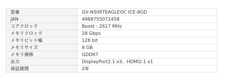 GV-N506TEAGLEOC ICE-8GD | GIGABYTE(ギガバイト) NVIDIA GeForce RTX 5060 Ti 搭載オーバークロック ホワイトカラー グラフィックボード (VRAM 8GB)