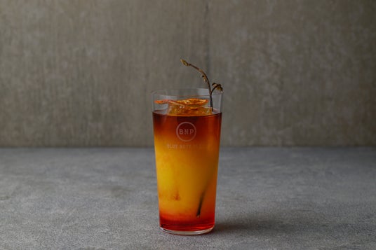 "cero"と同じ頭文字で、カンパリ、エスプレッソ、ラズベリー、オレンジを組み合わせた三層のグラデーションカクテル。香り付け兼マドラーの黒文字の枝で混ぜ合わせると、〈BEAMS CULTUART〉のオレンジカラーに。甘味、酸味、苦味のバランスが良く飲み心地のよい味わい。