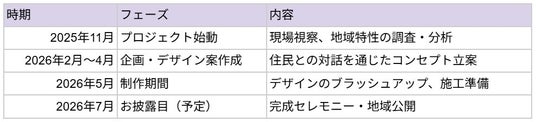 学生たちは学内や地域でのリサーチ・対話を通じて、2026年7月の完成を目指し、ワークショップ形式でプロジェクトを推進します。