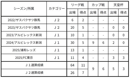 □出場記録(2025シーズン終了時点/Jリーグ所属時のみ)