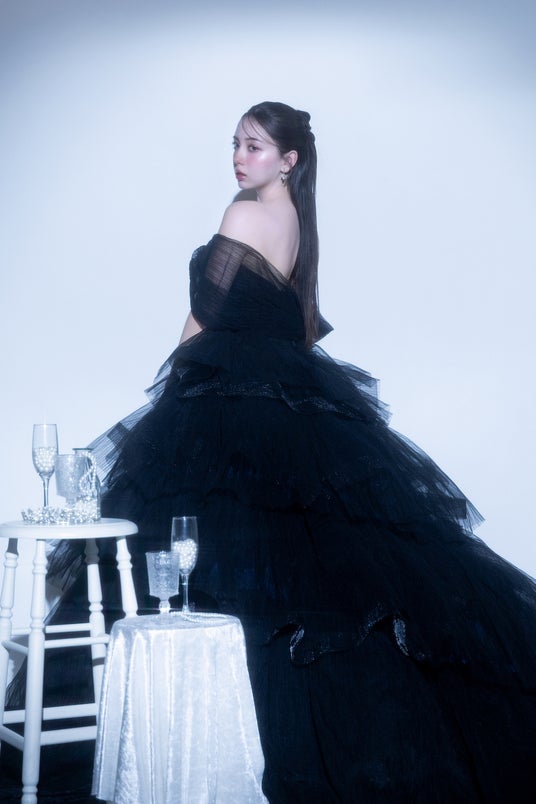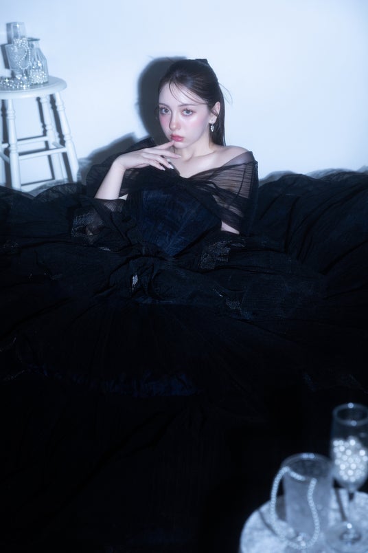 ドレスのベロア質感も高級感が出るように光沢感たっぷり。ドレスのボリュームのあるふわふわ感も相まって、トレンド感のある"かわいい"が詰まったビジュアルとなっております。