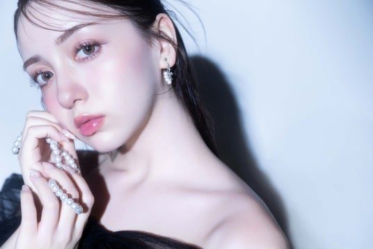 メイクは、パール感の光るツヤツヤなお肌に仕上げて。