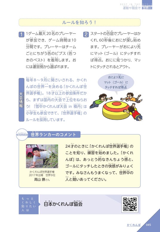 運動が得意な子でも苦手な子でも楽しめるよう、スポーツ以外にも、大人気ゲーム『マインクラフト』や俳句、イラストなど、文化系の大会情報も多数掲載しています。数ある世界一の記録を知ることで、自分の好きなことや得意なことを見つけ、「挑戦してみよう!」と思える一冊です。