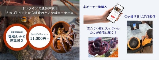 - 参加者は、たこを捕獲する際に使用する「たこつぼ」(1セット5つぼ分)のオーナー権をオンライン上で購入します。