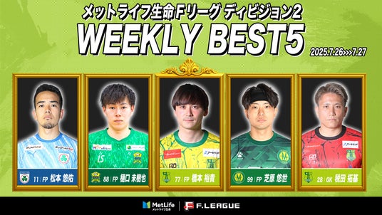 8月1日(金)~8月3日(日)に実施したメットライフ生命Fリーグ2025-26 ディビジョン2 第8節におけるベスト5をお知らせいたします。