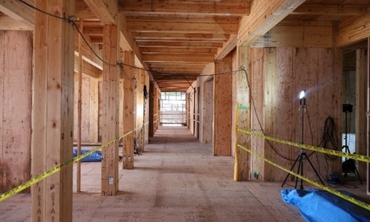 ・建築基準法の改正後の先進的な事例となる、耐火RC造の建物への火熱遮断壁等の使用による準耐火木造増築