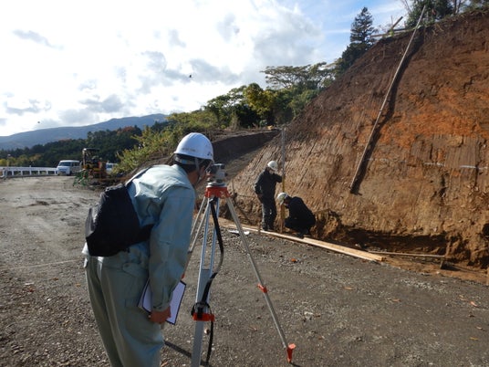 農道工事の現場での施工状況の確認