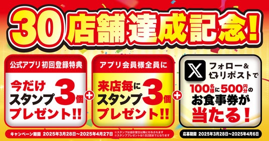 株式会社物語コーポレーション(本社:愛知県豊橋市/代表取締役社長:加藤 央之)が全国に展開する、「焼きたてのカルビ丼」と「ユッケジャンスープ」の専門店『焼きたてのかるび』は、2025年3月28日(金)に、30店舗目となる「焼きたてのかるび 岸和田久米田店」をオープンいたします。これを記念して、「アプリスタンプ プレゼントキャンペーン」と「Xフォロー&リポストキャンペーン」を開催いたします。