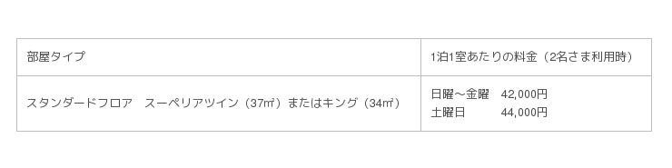 ■客室・料金 1泊ご朝食付(サービス料・消費税込、東京都宿泊税別途)