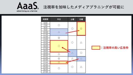 また、出稿した広告枠それぞれのアテンションリーチを把握することで、より注視されやすい枠を選定することができるようになります。これにより、テレビCMの広告効果を高め、広告主の各種KPI達成に繋がるメディアプラニングが実現できます。