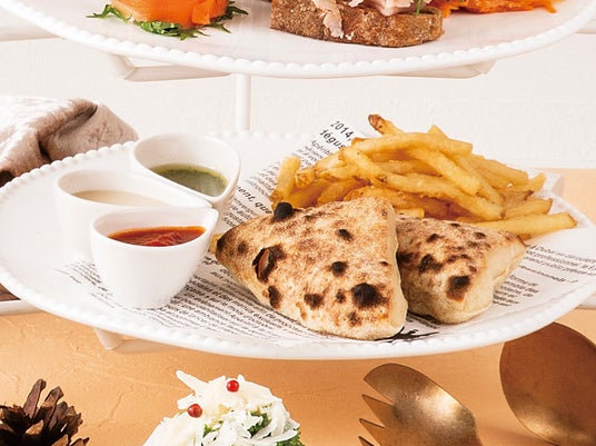 ペルティカ自慢の焼き立てフォカッチャや、生ホタテのカラフルマリネなど、会話も心も弾む彩り鮮やかな3段プレートをお楽しみください。