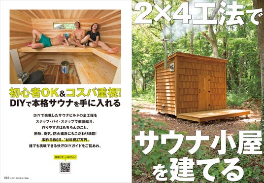 『Sauna Builder ~DIYでサウナを作る本~』(2021)に掲載したサウナ小屋作りリポートを大幅に加筆修正。使用する道具や資材から、断熱、換気、防火対策のポイントまで、実際の施工過程を写真とともに詳しく紹介。これを読めば、あなたも絶対サウナが作れる!