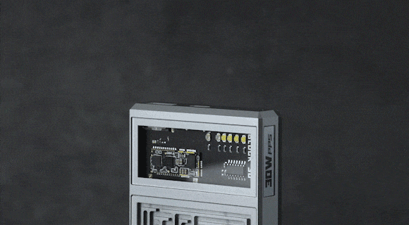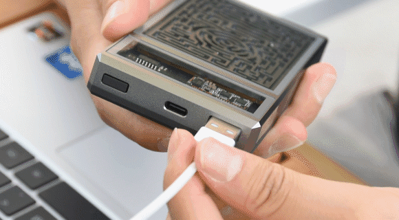 最大30Wの急速充電器が、独特の迷宮柄とSFのような雰囲気が漂う回路基板が見えるスケルトン構造で形作られました!
