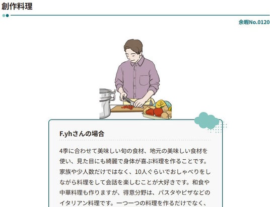 当社と静岡大学は、「人生を楽しむための余暇図鑑」をより多様な人々の余暇の過ごし方・生き方を紹介する内容へと拡充すべく、ヤマハ発動機に協力を要請。これに応じたヤマハ発動機から従業員36名の余暇の楽しみ方が提供されたものです。