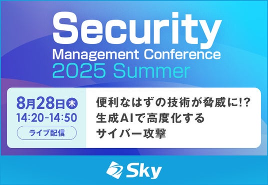 Sky株式会社は、2025年8月28日(木)~8月29日(金)にオンラインで開催される、SBクリエイティブ株式会社(ビジネス+IT)主催のセミナーイベント「Security Management Conference 2025 Summer」に協賛いたします。