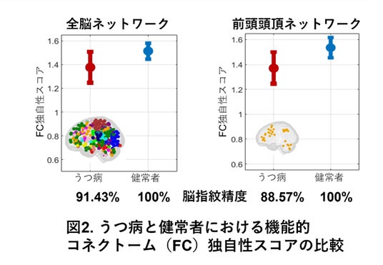 千葉大学子どものこころの発達教育研究センターのSiti Nurul Zhahara特任研究員、平野好幸教授、清水栄司教授、および広島大学大学院医系科学研究科の岡田剛教授らの共同研究グループは、うつ病患者を対象とした安静時機能的MRI(注1)から、個人の独自性を示す脳の領域間の機能的なつながりのパターンである「機能的コネクトーム(Functional connectome; FC)独自性(注2)(参考資料1)」を解析しました。その結果、健常者と比較して有意に低下していることを明らかにしました。