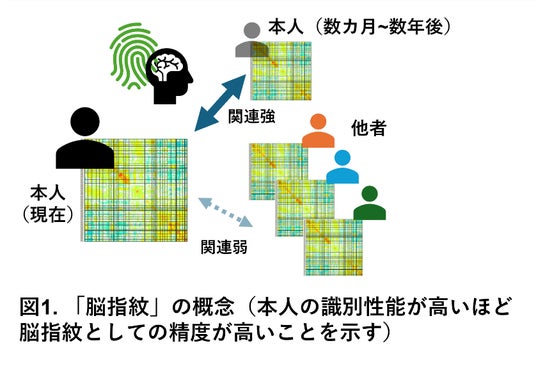 近年、脳の領域間のつながりのパターンが指紋のように個人ごとにユニークで安定しているという「脳の指紋(Brain Fingerprinting)(参考資料2)」という概念が注目されています(図1)。この独自性は脳の成熟や精神的健康状態を反映すると考えられており、本研究グループはこの指標を用いて、うつ病患者における臨床的な妥当性を世界で初めて検証しました。