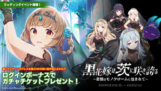 株式会社ケイブ(本社:東京都目黒区、代表取締役社長:秋田英好、証券コード:3760)が配信中のシューティングゲームアプリ『ゴシックは魔法乙女~さっさと契約しなさい!~』(『ごまおつ』)におきまして、6月19日(木)よりウェディングイベント『黒花嫁は茨に咲き誇る~悲憤はモノクロームに包まれて~』を開始いたしました。