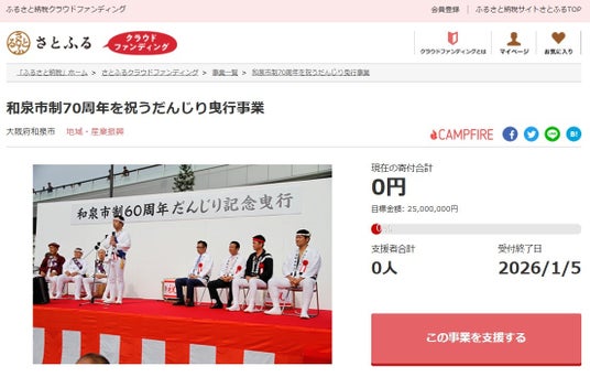 大阪府和泉市とふるさと納税ポータルサイト「さとふる」を運営する株式会社さとふる(本社:東京都中央区、代表取締役社長 兼 CEO:藤井 宏明)は、「さとふるクラウドファンディング」にて、大阪府和泉市における3事業の寄付受け付けを2025年10月1日より開始します。