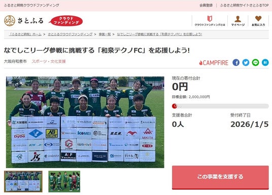 和泉テクノFCが大きく羽ばたき、なでしこリーグ昇格を果たせるよう、皆さまの温かいご協力をお願いいたします。