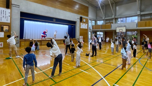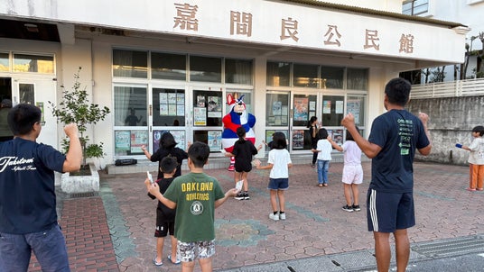 「おおきなわ」の活動の一環として、夏休み期間中にゴーディーがホームタウン沖縄市をはじめ那覇市、名護市の24箇所で地域の皆さまと一緒にラジオ体操を行いました。また、キングスと沖縄アリーナ株式会社のスタッフも参加し、多くの子どもたちや地域の皆さまと交流することができました。