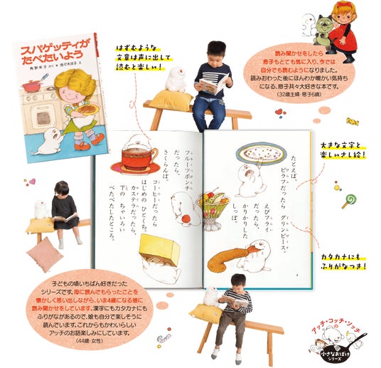 1979年に『スパゲッティがたべたいよう』でスタートした「アッチ・コッチ・ソッチの小さなおばけ」シリーズは、魅力的なキャラクターと自由な発想のストーリーで、子どもたちの大きな支持を集めました。親から子へと世代を超えて読み継がれています。子どもたちにひとり読みの楽しさを届けたいという思いを込めて、角野先生のライフワークとして毎年新刊が発表され、幼年童話のロングセラー・シリーズとしてファンを増やし続けています。