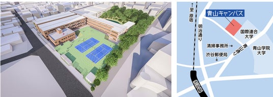 最初の仮設校舎となる青山キャンパスは、旧青山病院敷地に建設され、2025年9月に開校予定です。