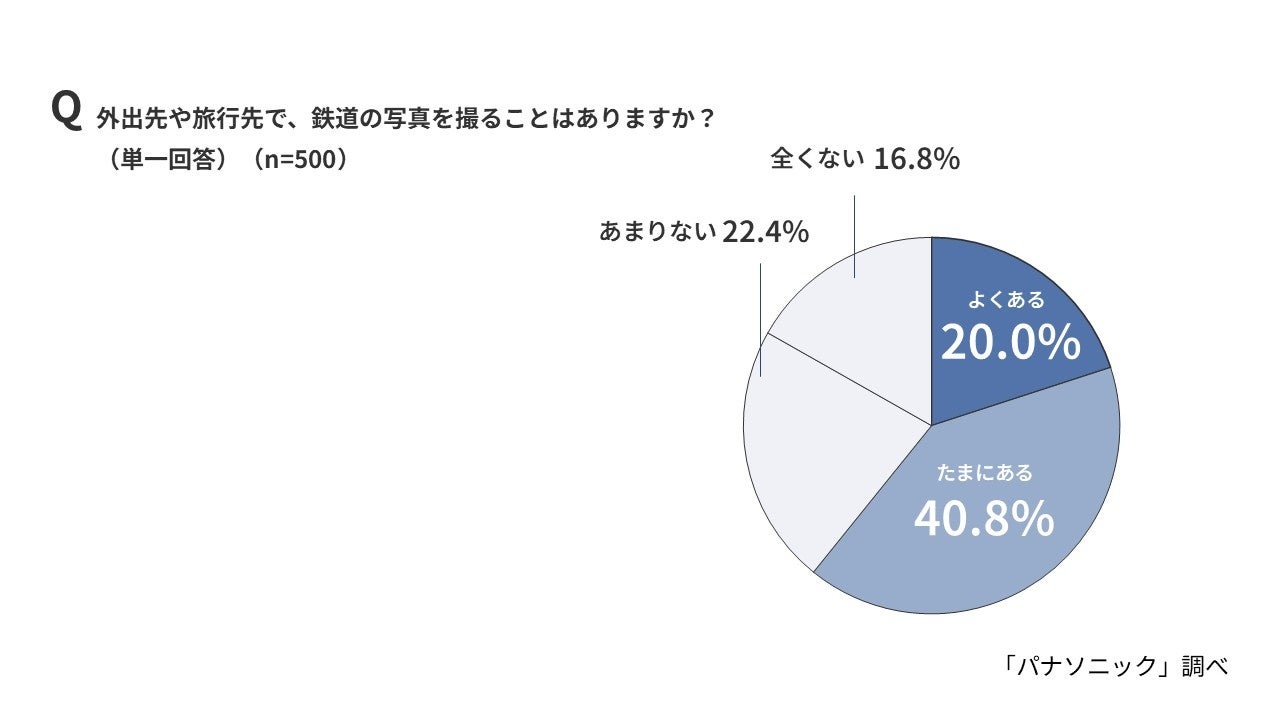 続いて、外出先や旅行先で鉄道の写真を撮ることがあるかを聞いたところ、「よくある」「たまにある」を合わせて60.8%に達しました。多くの家庭において、単に列車を見るだけでなく、親子でその姿を記録に収めることが共通の楽しみとなっており、子どもが鉄道に熱中するのに寄り添ううちに親も一緒に鉄道の世界へ没入している様子がうかがえます。