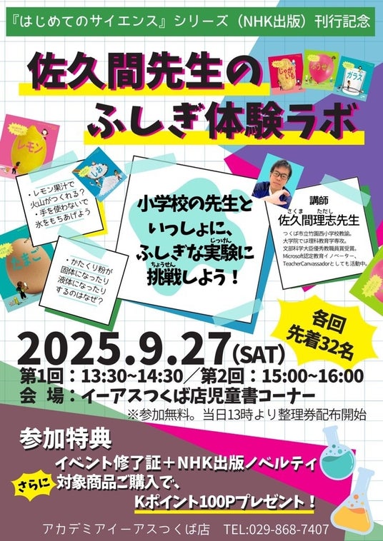 『はじめてのサイエンス』シリーズ刊行記念 佐久間先生のふしぎ体験ラボシリーズの刊行を記念して、現役の小学校の先生による体験ラボを開催します。