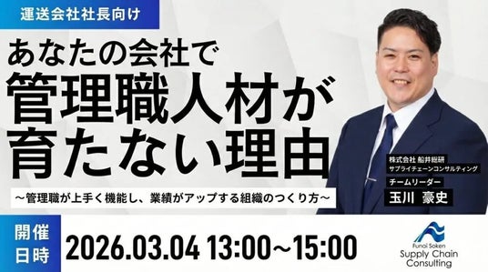 2026年3月4日(水)、株式会社船井総研サプライチェーンコンサルティング(本社:東京都中央区、代表:橋本直行、以下「船井総研SC」)の経営コンサルタントが運送会社の管理職育成について解説します。