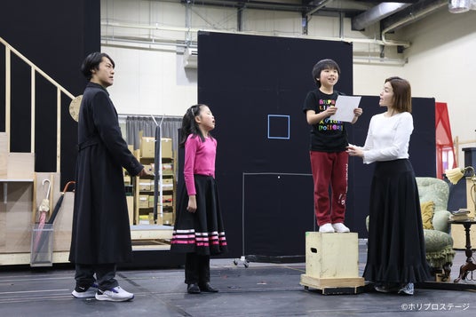 左より)ジョージ役:福士誠治、ジェーン役:久住星空、マイケル役:中込佑玖、ウィニフレッド役:知念里奈