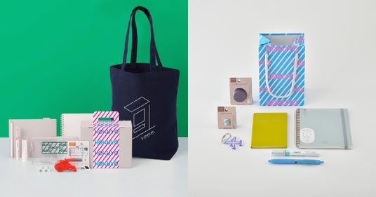 コクヨの新ロゴをあしらった(左)スペシャルセット(右)シークレットセット一例