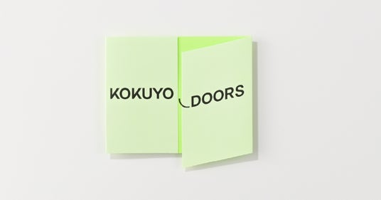 コクヨの好奇心溢れる世界へのドアが開くイメージを表現しています。ショップカードは実際にドアのようにページを開くことで、中面にワクワクする世界が広がっていることを予感させるようなデザインです。