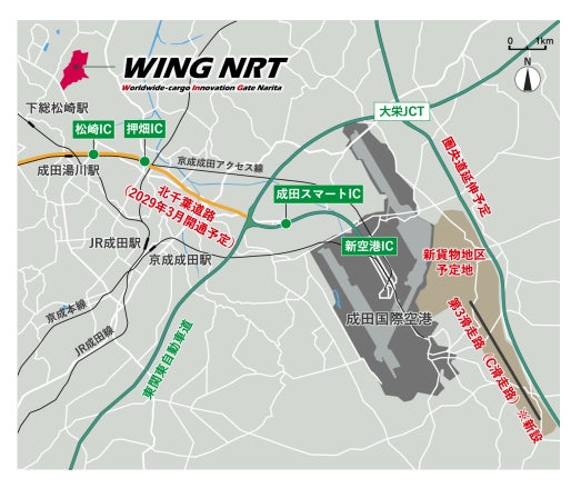 なお本街区の名称「WING NRT(ウイング ナリタ)」は、本街区の上屋施設を通じて日本と世界がつながる革新的な拠点となることを目指す意味を込めた「Worldwide-cargo Innovation Gate」の頭文字であり、航空機を連想させる「WING」と成田空港の空港コードである「NRT」を組み合わせたものです。