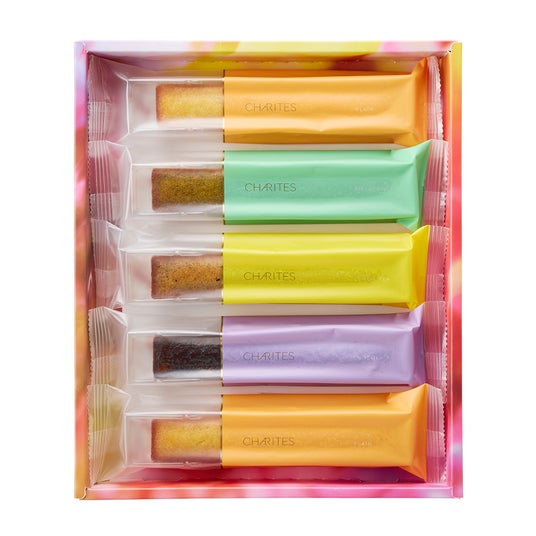 特長:ハイエンドクリエイティブブランド【カリテス】。カラフルポップなデザインが目を引く焼菓子ブランドです。メイン商品はスティックケーキを詰め合わせた「エフォートレス」。