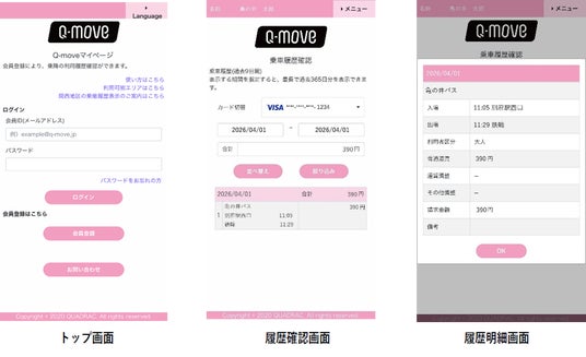 交通事業者向け決済及び認証のプラットフォームを提供する QUADRAC の Q-move サイト( https://q-move.info/ )にアクセスいただき、「マイページ」の会員登録手続きの後ご覧いただけます。