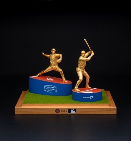さらに、純金製フィギュアも販売いたします。種類は「K24 バッター大谷翔平」「K24 ピッチャー大谷翔平」 「K24 二刀流大谷翔平」の3種あり、各1/10スケールと1/20スケールをご用意いたします。