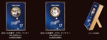 「大谷翔平 純金コレクション」と題して、直径約5.4cm、100gの純金を使用した大谷選手のメダルを特別企画品として発売します。バッターとピッチャーの2種類をご用意しており、販売予定価格は各9,614,000円です。