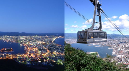 海抜334mの山頂まで約3分間の空中散歩。山頂から向かって右側に津軽海峡。左側に函館港を望み、夜には素晴らしい夜景が眼下に広がります。