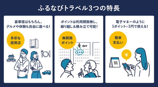 「ふるなびトラベル」は、ふるさと納税の寄附で得たふるなびトラベルポイントを、提携店(ホテル・飲食店・アクティビティ施設など)でのお支払いに無期限で利用できるサービスです。