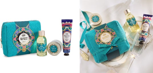 鮮やかなブルーのポーチがついた毎年人気のセット