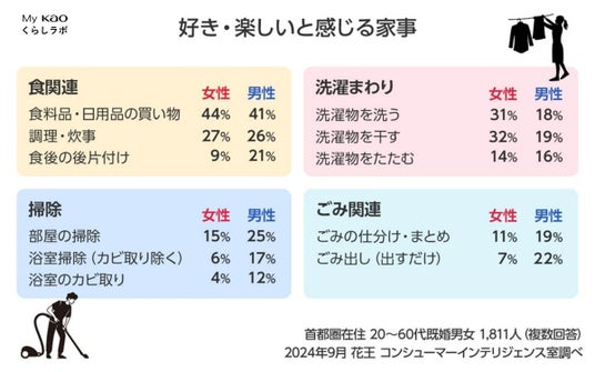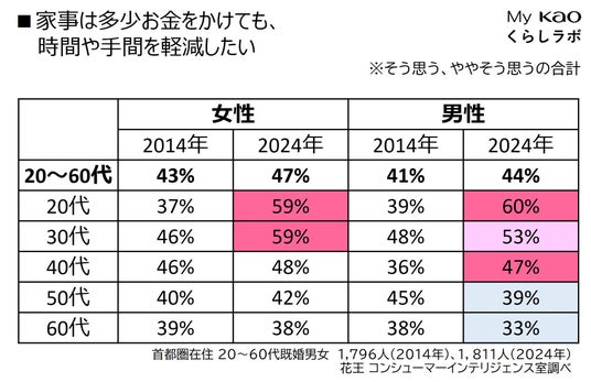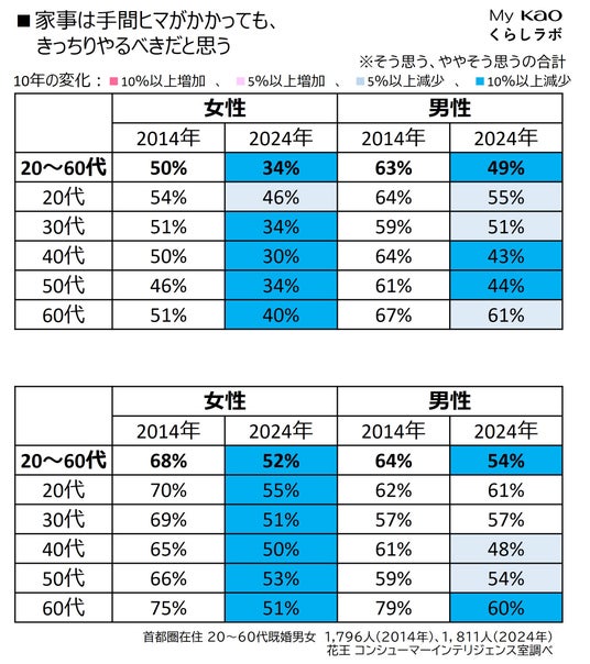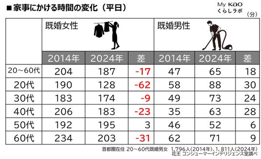花王株式会社では、暮らしに関わる様々な調査を行っています。結婚や出産後も働き続ける女性が増え、男女の家事に対する意識も変わってきています。中学・高校の家庭科が男女共修になってすでに30年が経ち、家事の風景はどのように進化したのでしょうか?定点調査データから見える暮らしの変化を「My Kaoくらしラボ」(※1)にて2025年3月25日に公開します。