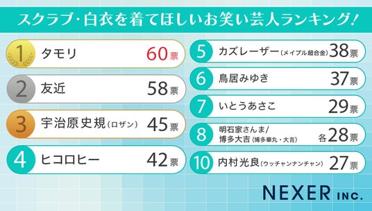 株式会社NEXER・スクラブ・白衣を着てほしいお笑い芸人に関する調査