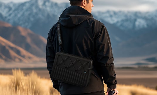 「ProArt GoPro Edition (PX13 | HN7306)」本体や、ASUS Pen 3.0、ケーブル、アクセサリ類を収納して持ち運びができる専用スリーブが付属しています。GoProデザインを踏襲し、安全に持ち運びができるように設計されました。肩から下げられるストラップも付属しています。